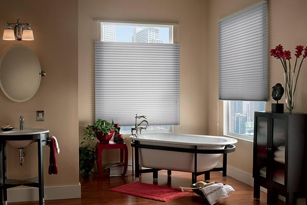 Honeycomb (Cellular) Shades are soft, yet durable, shades available in single, double or triple honeycomb shades for better energy efficiency. These shades come in a large assortment of colors and are among the most popular due to their crisp, clean style and wide variety of sheer, light-filtering, or room darkening fabrics. When raised, cellular shades are compact, giving you a clear view.